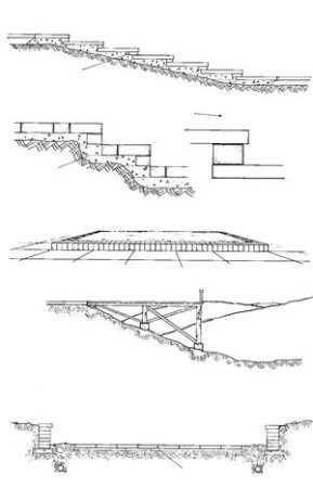 A retaining wall with an earthen bank behind has to carry a very heavy loading. Simple walls of blocks are not able to withstand the pressure and may collapse, or be overturned. The design of these walls involves calculations of the amount and type of steel reinforcements.
