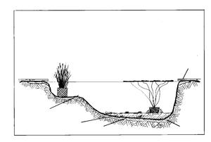 An ‘artificial’ stream can be made of a series of long narrow, shallow pools. In this case, and for cascades, it is essential to hide the liner with sand, gravel or stones. Any sight of the liner destroys the effect of these natural-looking garden features.