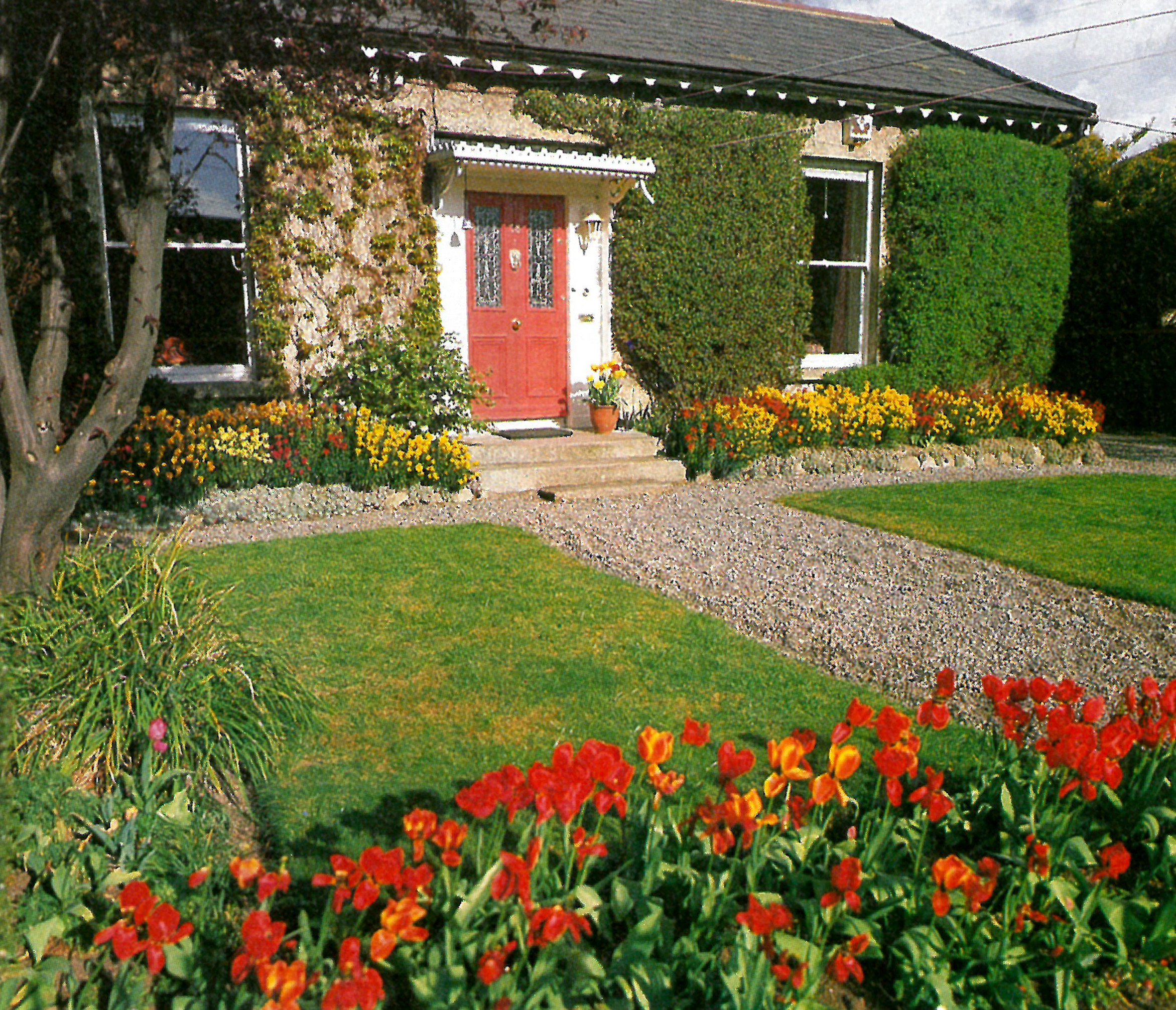 A Victorian house might, for example, have some dark broad-leaved evergreens, hedges, a gravelled path or two, and some small box-edged flower beds.