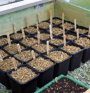 Place in an appropriate temperature – a warm room, propagator or greenhouse for most types of seed, the hot press for the few that like a high temperature. Watch carefully for germination.