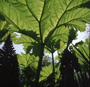 The size of the foliage principally governs plant texture. Large size gives a bold dramatic effect – gunnera(as shown), lysichiton, ornamental rhubarb, acanthus, rodgersia, bergenia, hosta, fatsia, chestnut, hydrangea.